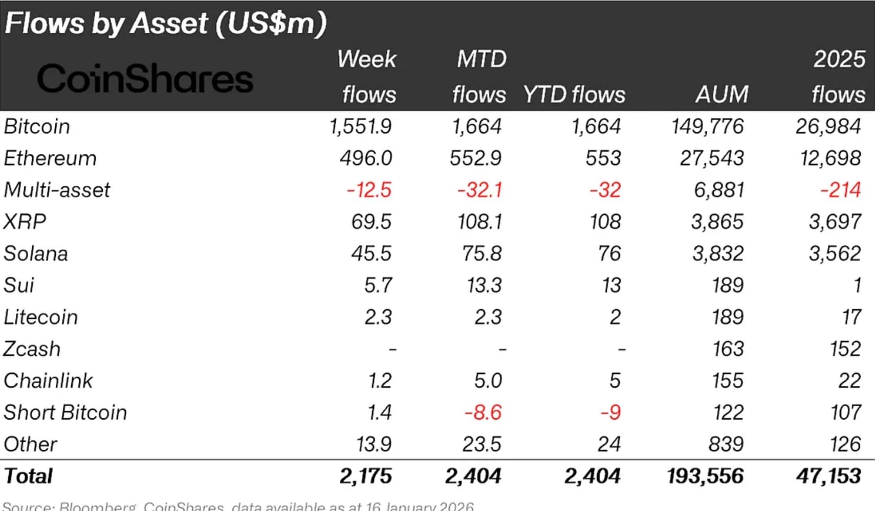 Niedawny raport CoinShares ujawnia, że globalne produkty inwestycyjne w aktywa cyfrowe zostały zalane gotówką, zbierając w zeszłym tygodniu 2,17 miliarda dolarów. Oznacza to największą tygodniową sumę od 10 października 2025 r., tuż przed krachem na rynku kryptowalut – ponieważ nic nie mówi o „świętowaniu” lepiej niż zapobiegawczy krach 🤯.